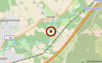 Nach der Ortsdurchfahrt von Bad Fallingbostel gerade über den Kreisverkehr, dann nach 1 Km rechts in den Wald und der Straße folgen.